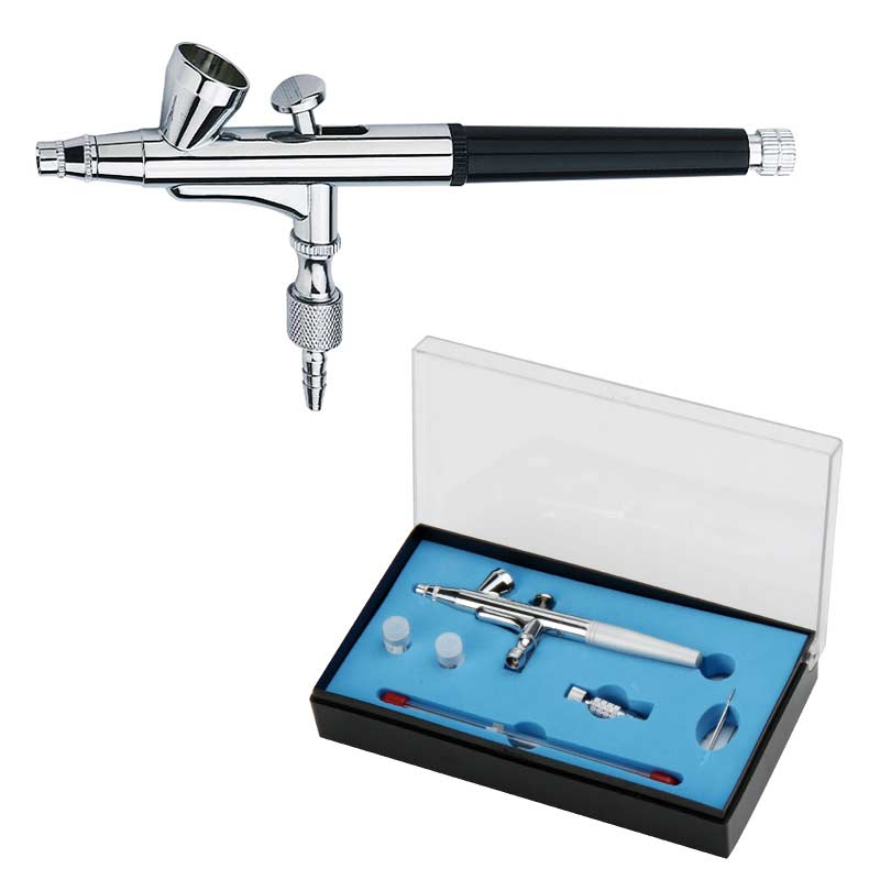 Product SKU:AB-136S Specifications: Feed Type: Gravity Nozzle Dia.: 0.2mm,0.3mm,0.5mm Needle Dia.: 0.2mm,0.3mm,0.5mm Cup Capacity: 2cc Spanner: 1pc Quick Coupler: 1pc Working Pressure: 15-50PSI Dual-Action Trigger Air-paint Control. Package Including: 1 x airbrush 1 x spanner 1 x quick coupler 2 x extra needle 2 x extra nozzle Package: Carton Dimensions: 45x38x31.5cm PCS/CTN: 30 Net weight: 12KG Grass weight: 14.5 KG |